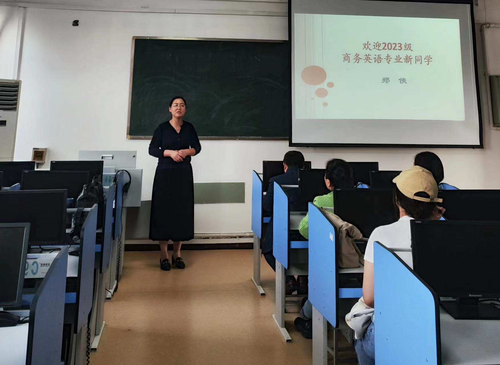 首先,商务英语系主任郑侠详细介绍了本专业的培养目标、师资力量、学业要求和课程设置等,帮助新生更好地了解本专业的特点。