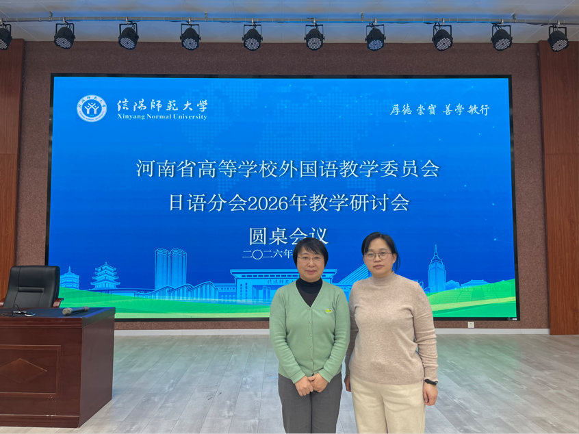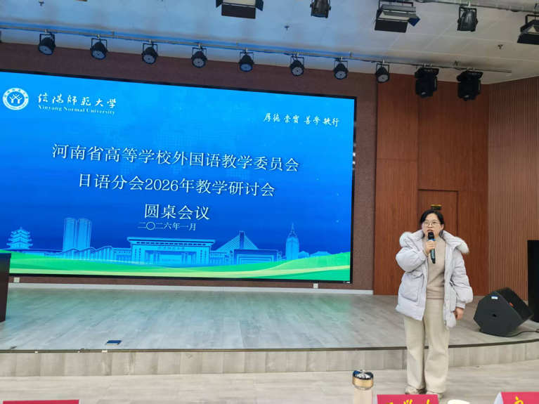 为深入贯彻新时代外语教育改革精神,进一步推动高校日语专业高质量发展,2026年1月10日,河南省高等学校外国语教学委员会日语分会2026年教学研讨会在信阳师范大学顺利召开。本次会议汇聚了省内多所高校日语教育专家、一线教师及行业代表,围绕日语教学改革、人才培养与就业对接等议题展开深入研讨。beat365官网日语专业教师张天及专业负责人金珽实参加了本次会议。