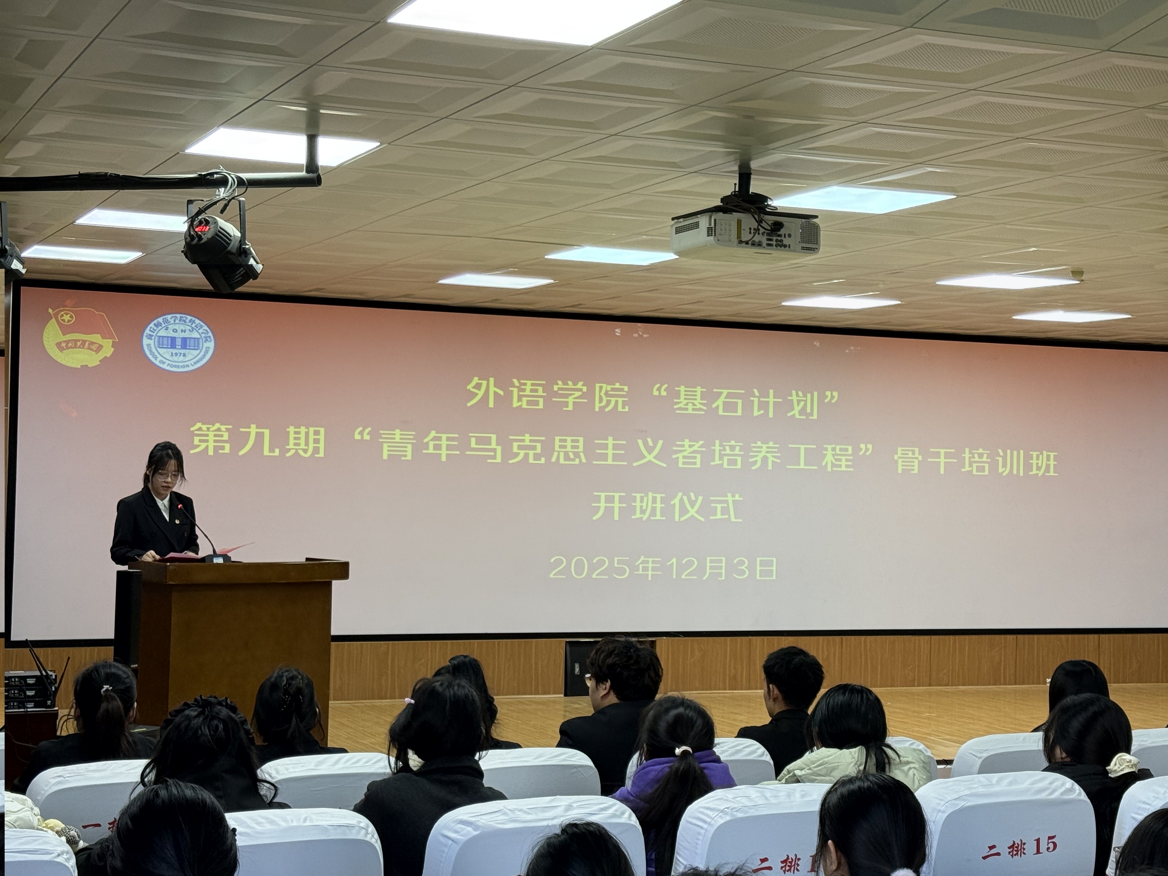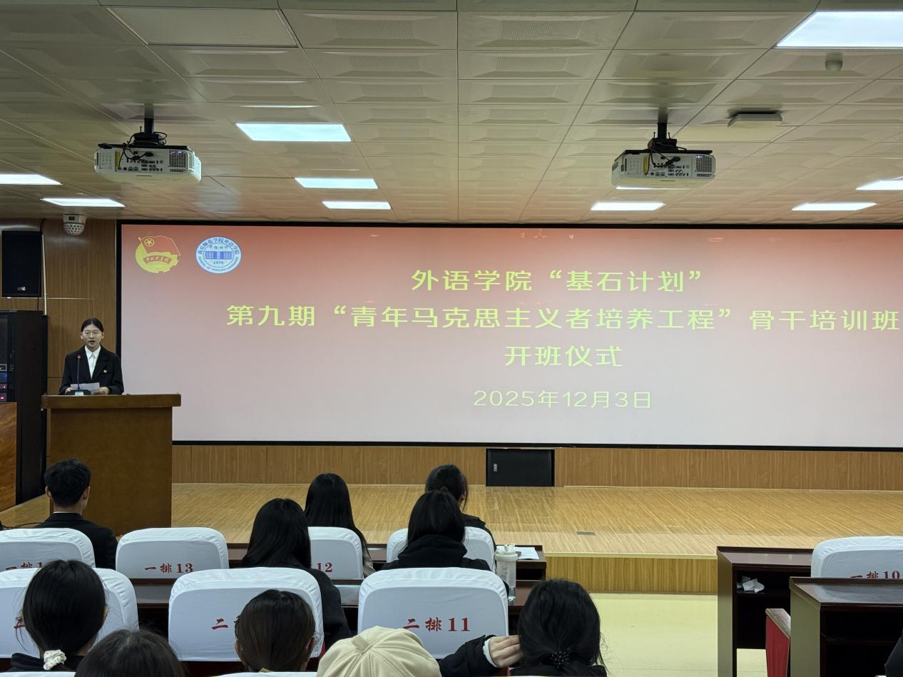 为深入学习贯彻习近平新时代中国特色社会主义思想和党的二十届四中全会精神,进一步加强“青年马克思主义者培养工程”建设,着力培养并输送一批信仰坚定、能力突出、素质优良、作风过硬的青年政治骨干,beat365在线唯一官网团委于12月3日在智圆楼219多功能厅举行beat365在线唯一官网“基石计划”第九期“青年马克思主义者”骨干培训班开班仪式。beat365在线唯一官网党委副书记王頔、团委负责人孙颖、培训班全体学员参加,仪式由团委副书记刘婷主持。