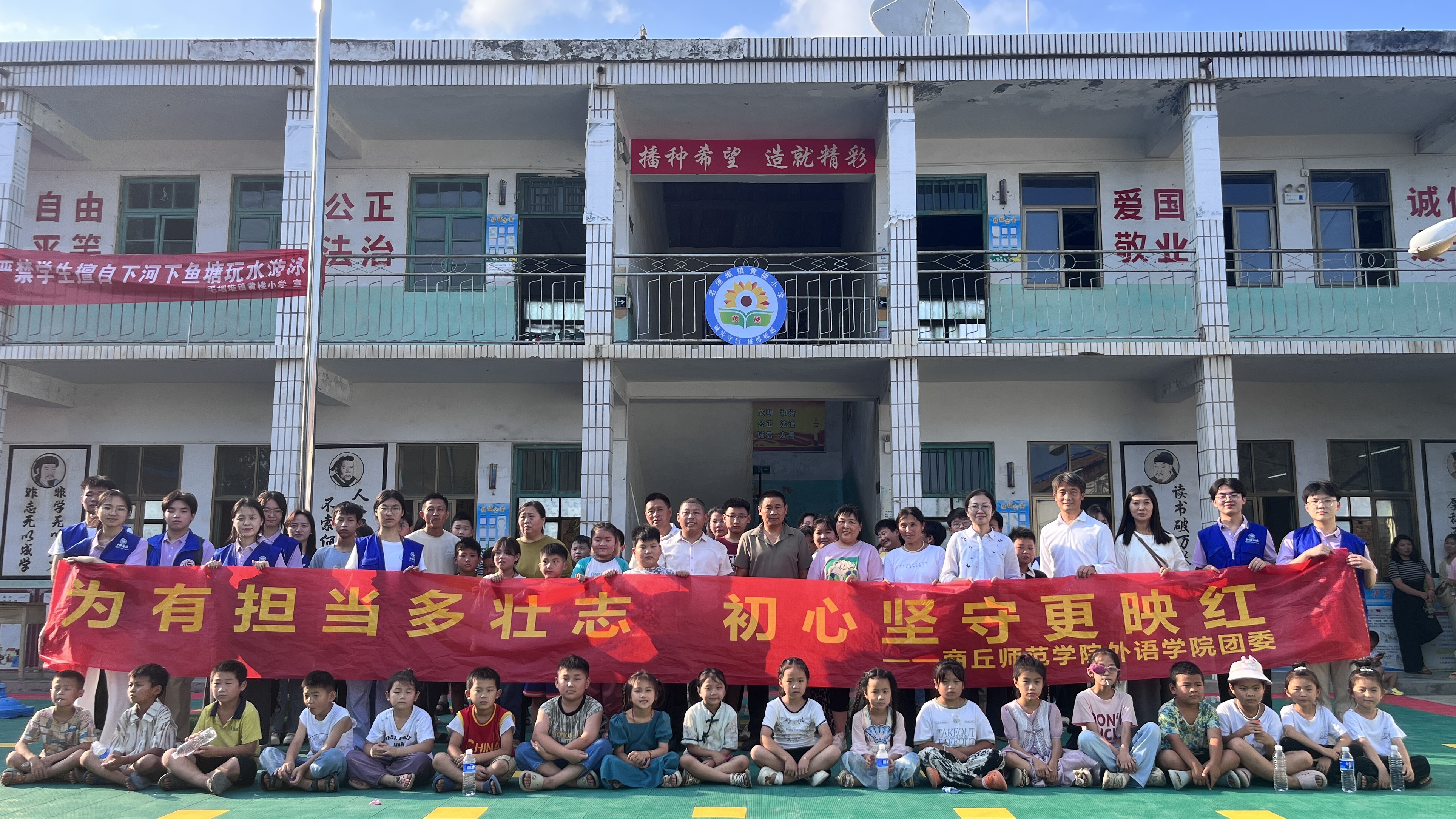 为深入推进乡村教育的帮扶工作,为青年大学生提供更多的实践锻炼机会,7月3日下午,beat365在线唯一官网“萌芽志愿服务团”在院党委副书记王頔、副院长孟喜华、团委书记赵蕊的带领下,前往商丘市睢阳区毛堌堆镇黄楼小学开展大学生就业实习基地挂牌活动暨“为有担当多壮志 初心坚守更映红”2024年暑期社会实践活动。商丘市睢阳区毛堌堆镇中心学校业务主任李阳、黄楼小学校长郑付宾出席活动,黄楼小学全体师生及家长代表参加,活动由王頔主持。