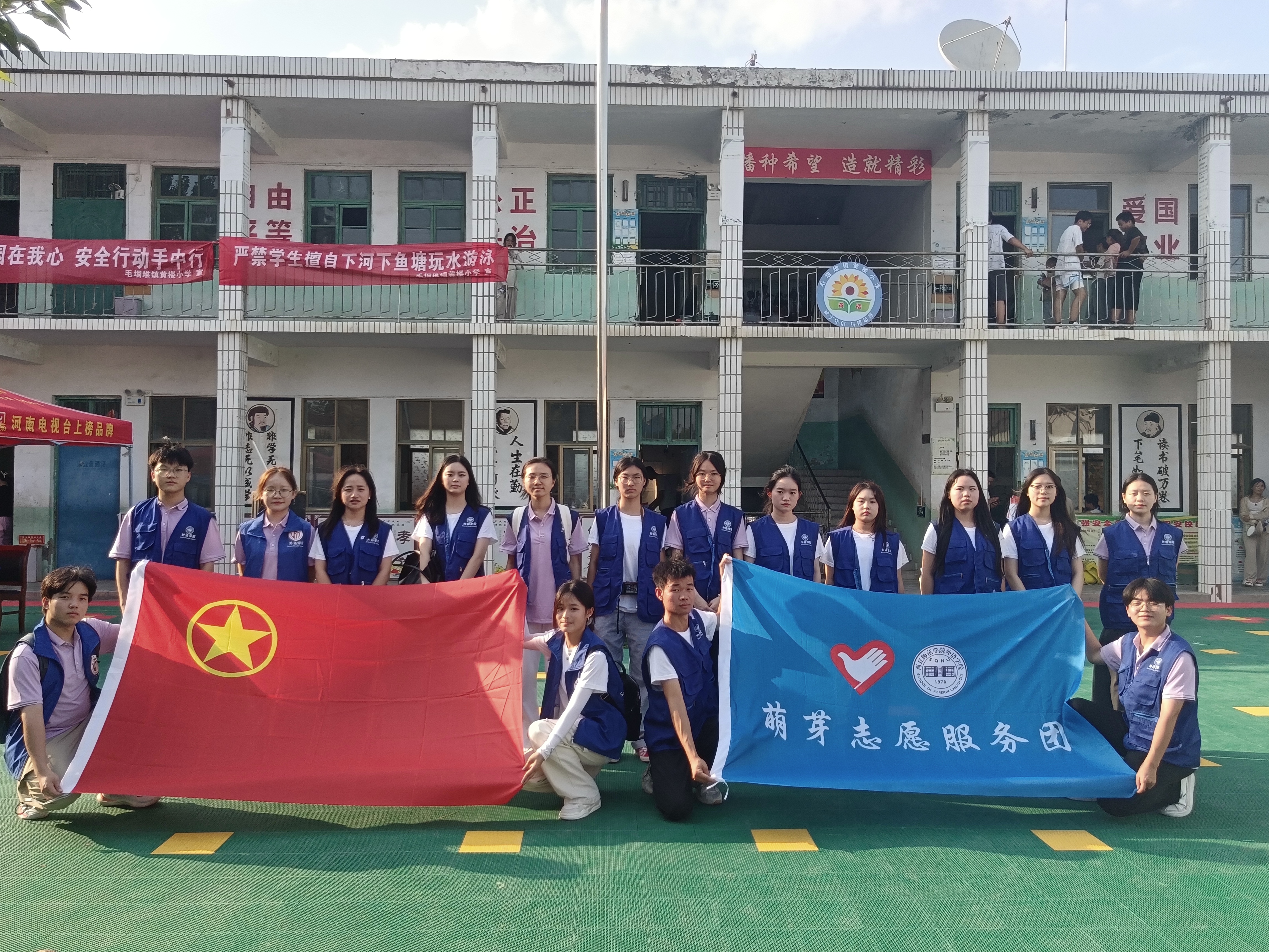 仪式结束后,“萌芽志愿服务团”的成员们为黄楼小学的学生们带来了精心准备的教学课程和丰富多彩的文体活动。生动有趣的外语课堂激发了孩子们对外语的浓厚学习兴趣;互动有趣的文体活动促进了孩子们的身心健康发展;青春与奋斗的主题宣讲,在孩子们心中播下了知识和力量的种子,激励并引领着祖国的花朵茁壮成长。