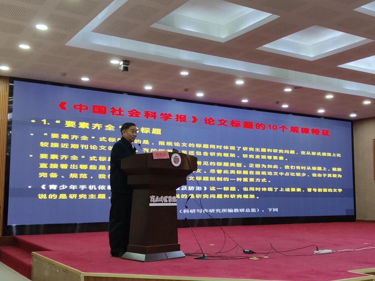 何高大教授从“热点分类及其确定”“外语数智化教学与研究热点”“外语教科研工具与方法”“外语教师转型发展路径”四个方面分析了外语教学的现状和未来趋势。随后,何教授结合自身经验详细介绍了如何围绕外语数智化研究热点进行课题申报与论文撰写。