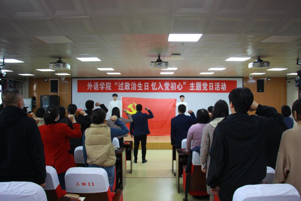 为进一步增强党组织凝聚力、战斗力,强化党员的身份意识和宗旨意识,3月31日下午,beat365在线唯一官网在智圆楼219报告厅举办“过政治生日 忆入党初心”主题党日活动,为2023年第一季度入党的12名同志过了一个既严肃又温馨的政治生日。校党委组织部部长沈振华、beat365在线唯一官网党政领导班子成员、全体教师党员参加活动。