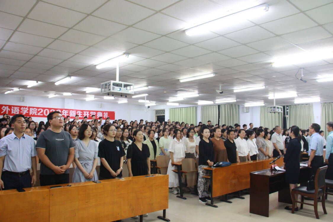 开学典礼在高亢的国歌声中拉开序幕。