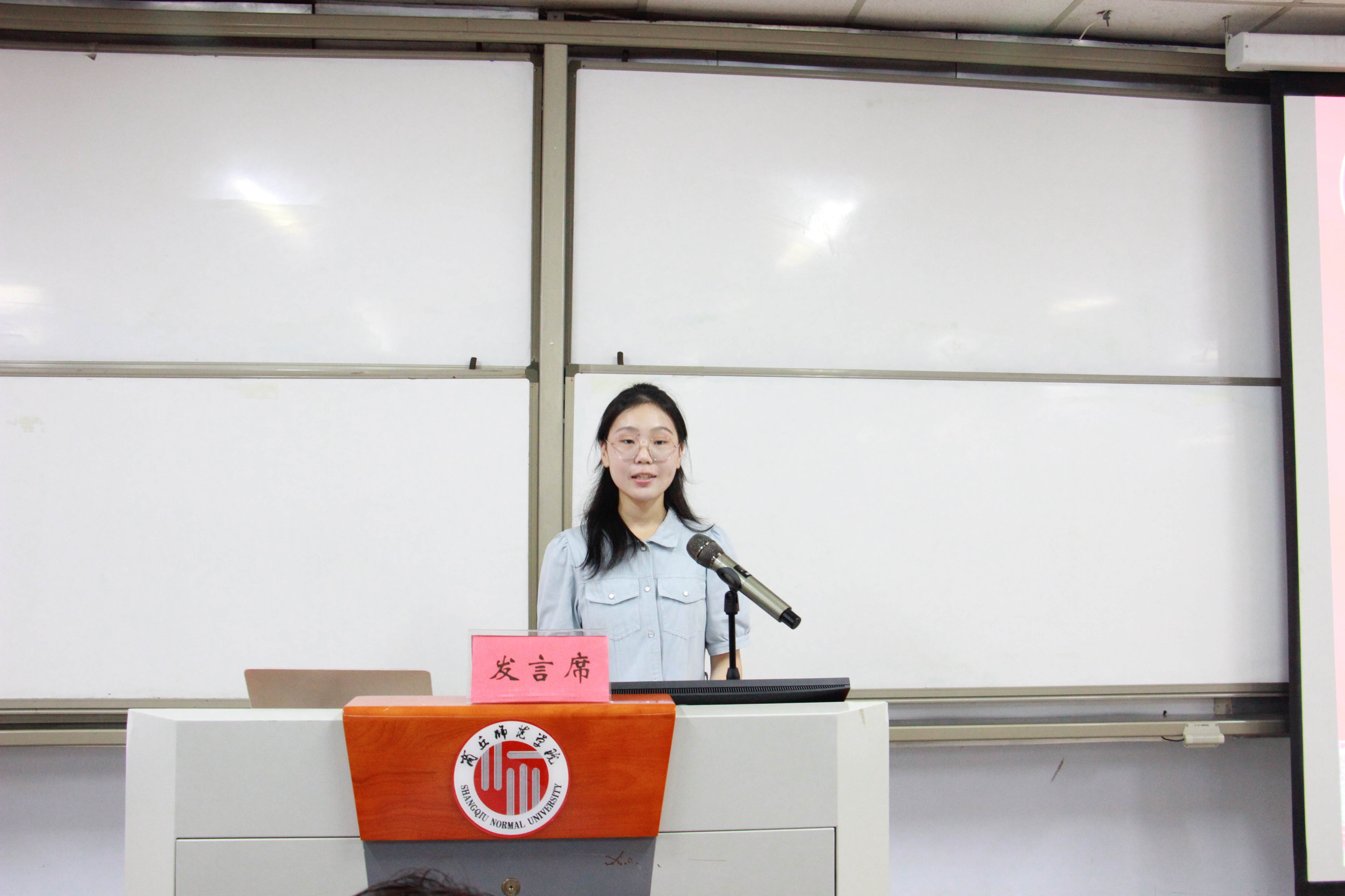 英语23-6班李可盈作为新生代表发言,分享了自己的学习生活感悟,表示要在商丘师院怀抱梦想、脚踏实地,以奋斗姿态激扬青春、砥砺青春,力争成为商师骄子、外院荣光。