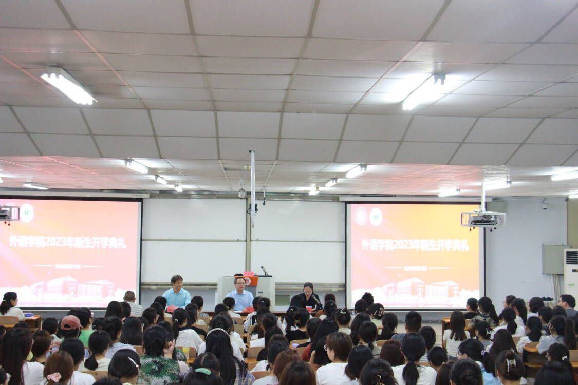 韩坤首先致辞,他对2023级新生表示了热烈的欢迎,并对商丘的历史文化、beat365在线唯一官网和beat365在线唯一官网的开设专业、学科建设、师资力量等做简要介绍。同时,他对同学们提出三点建议:一是要转变适应、寻找热爱;二是要慎独自律、埋头做事;三是要身心健康、笑对坎坷。他希望大家要胸怀“国之大者”,铭记“应天归德 智圆行方”的校训,“学好外国语,做好中国人”,用外语向世界讲好中国故事、中原故事、商师故事,努力创造属于自己的精彩大学生涯。