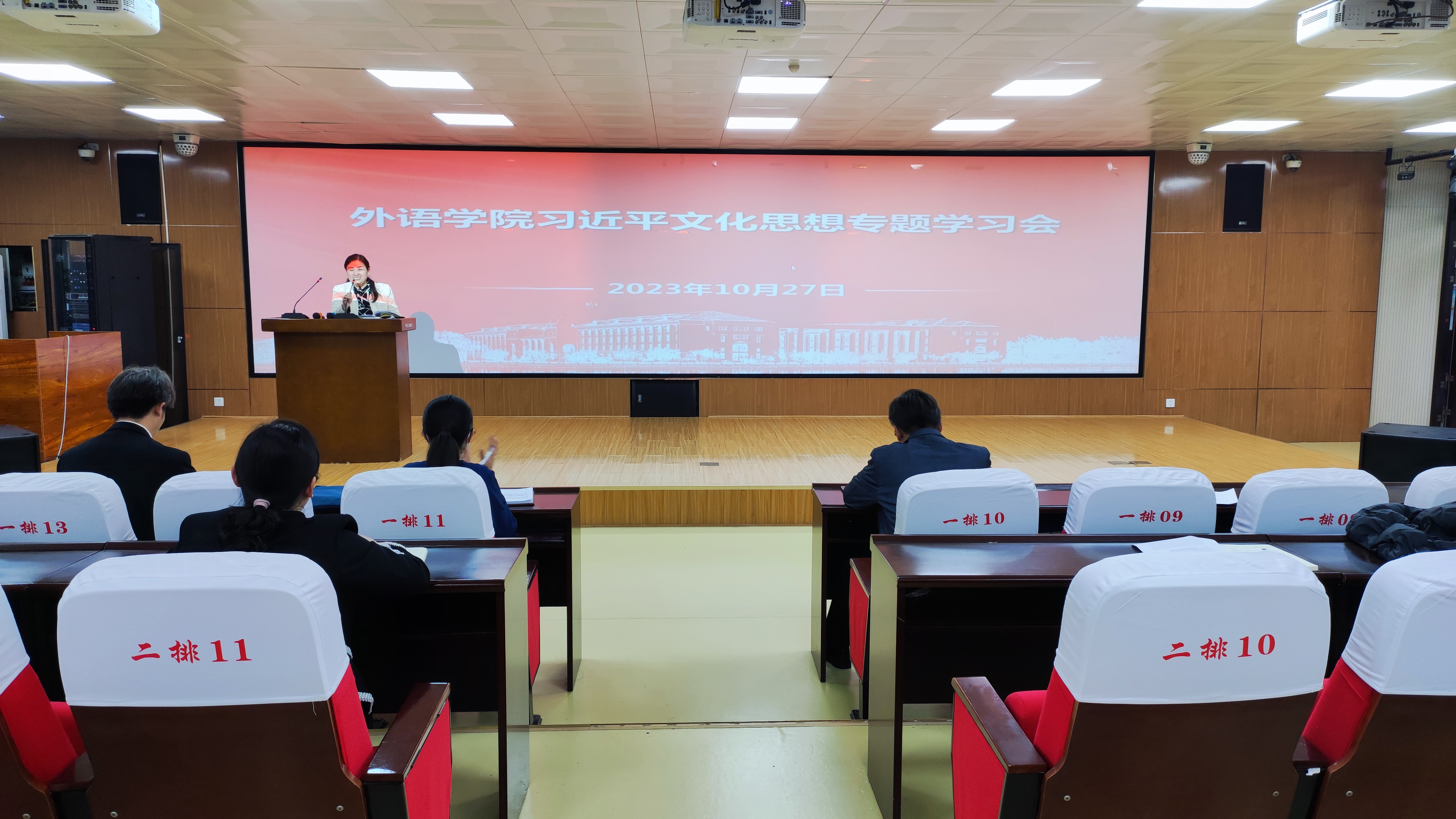 10月27日,beat365在线唯一官网在智圆楼219报告厅召开全体教职工集中理论学习会,深入学习贯彻习近平文化思想。会议由党委书记韩坤主持,学院领导班子成员、全体教职工参加。