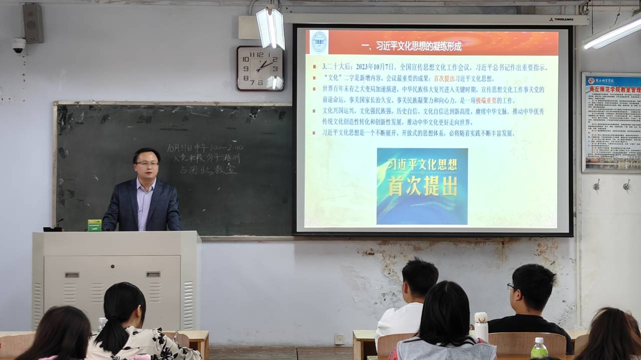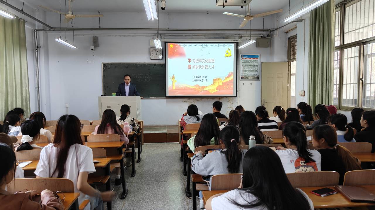 韩坤重点围绕习近平文化思想的凝练形成;坚定文化自信、用外语讲好三个故事;坚定理想信念、树立马克思主义宗教观;寄语入党积极分子等四个方面进行讲述。他强调,新时代大学生要自觉树立马克思主义宗教观、辩证唯物主义和历史唯物主义的世界观,共同做好校园宗教“双防”工作。beat365在线唯一官网全体学生都要注意在中西方文化对比中坚定文化自信,赓续中华文脉,努力成长为具有强烈家国情怀、宏阔国际视野、堪当民族复兴大任的新时代外语人才,用外语向世界讲好中国故事、中原故事、商师故事。