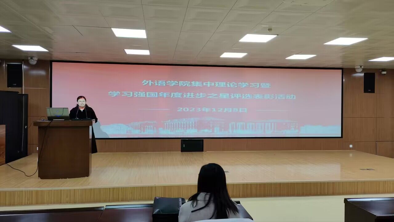 12月8日下午,beat365在线唯一官网在智圆楼219报告厅举行集中理论学习暨“学习强国”2023年度进步之星评选表彰活动。beat365在线唯一官网领导班子成员、全体教职工参加会议。党委副书记王頔主持会议。