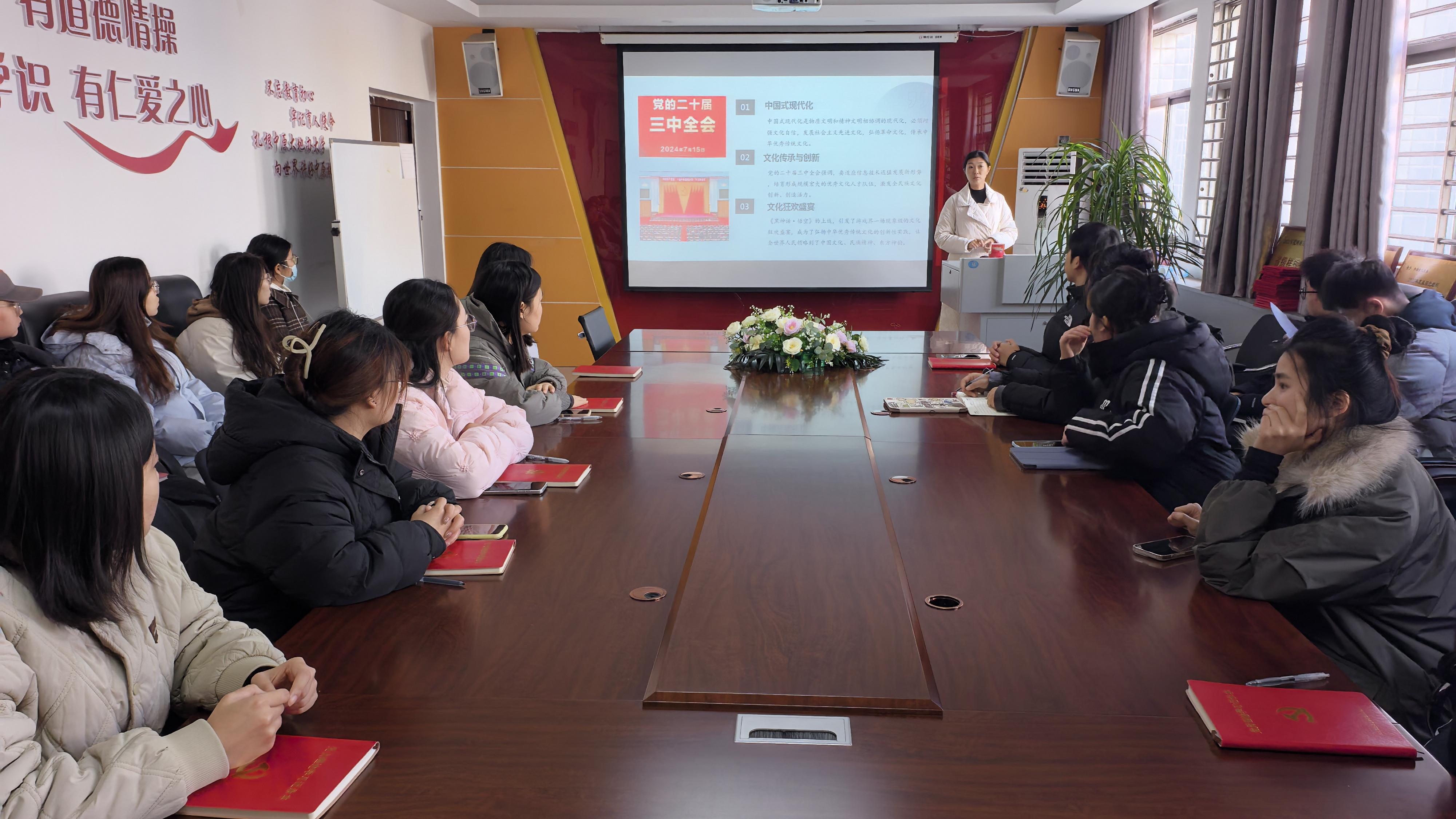 为使预备党员深刻领悟中华优秀传统文化,增强对文化传承和创新意识,12月13日中午,beat365在线唯一官网在应天楼214会议室开展2024年下半年预备党员分党校培训(第二讲)。本次培训以“中华优秀传统文化的创新型实践,黑神话・悟空——跨越千年的文化之旅”为主题,由beat365在线唯一官网学生第三党支部书记赵蕊授课,本期应参训预备党员参加。