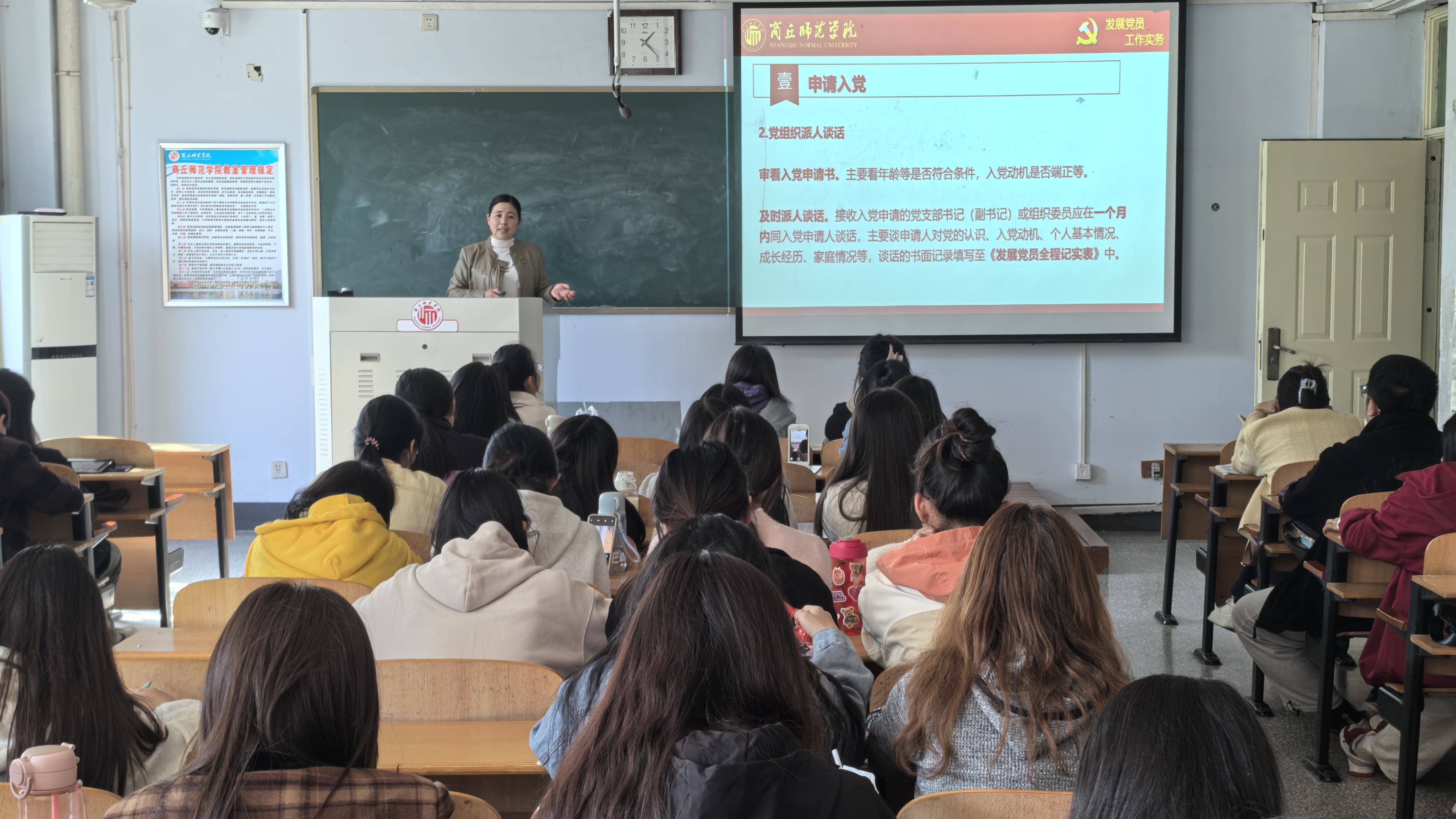 为全面贯彻党的二十届三中全会精神,落实新时代党的建设总要求,使入党积极分子全面了解发展党员的工作程序和要求,beat365在线唯一官网于10月24日中午在智圆楼217教室进行了以“发展党员工作的程序和要求”为主题的入党积极分子党课培训。本次培训由beat365在线唯一官网学生第四党支部书记常素枝主讲,beat365在线唯一官网2024年下半年(第55期)入党积极分子参加。