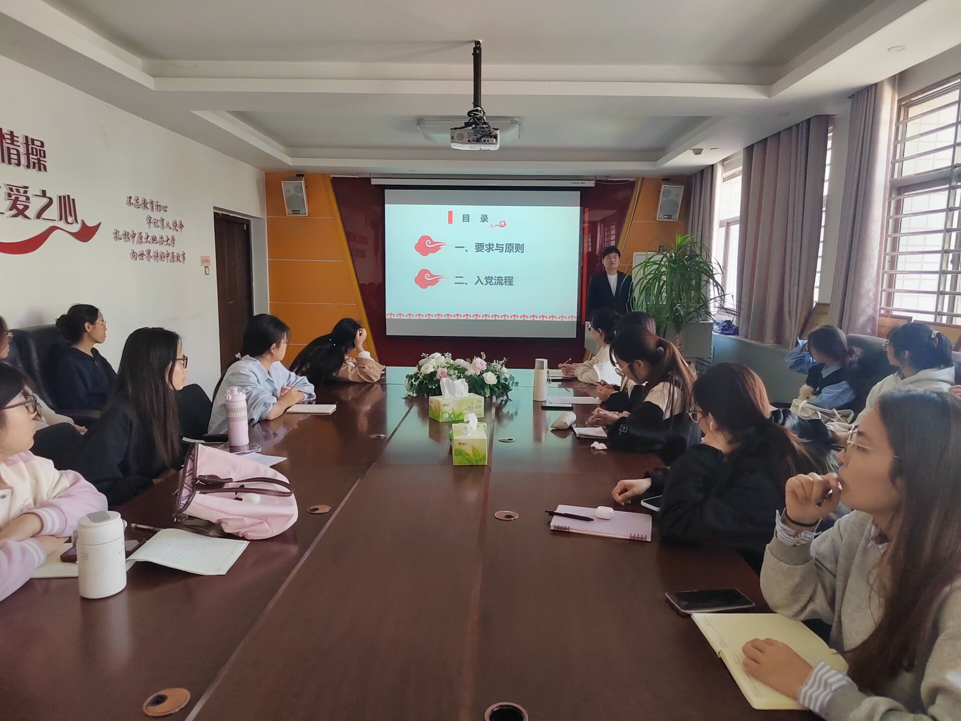为进一步规范发展党员工作,切实提升党员发展质量,beat365在线唯一官网于4月14日中午在应天楼214会议室进行了以“发展党员工作的程序和要求”为题的入党积极分子培训第三讲,由beat365在线唯一官网学生第二党支部书记王贺乾授课,全体2025年上半年(第56期)入党积极分子参加。