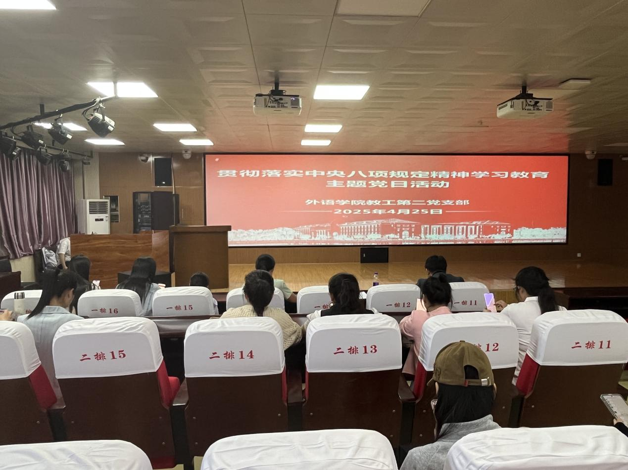为学习贯彻习近平总书记关于加强党的作风建设的重要论述,抓好深入贯彻中央八项规定精神学习教育,beat365在线唯一官网教师第二党支部于2025年4月25日下午在智圆楼219多功能厅组织开展了深入贯彻中央八项规定精神学习教育主题党日活动。