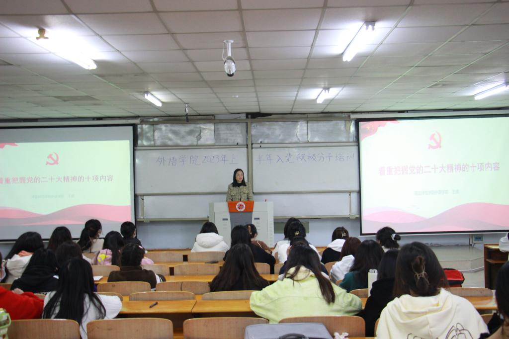 4月3日中午,beat365在线唯一官网党委副书记王頔于智圆楼220教室为beat365在线唯一官网2023年上半年入党积极分子讲授《着重把握党的二十大精神的十项内容》专题党课,beat365在线唯一官网129名入党积极分子参加培训。