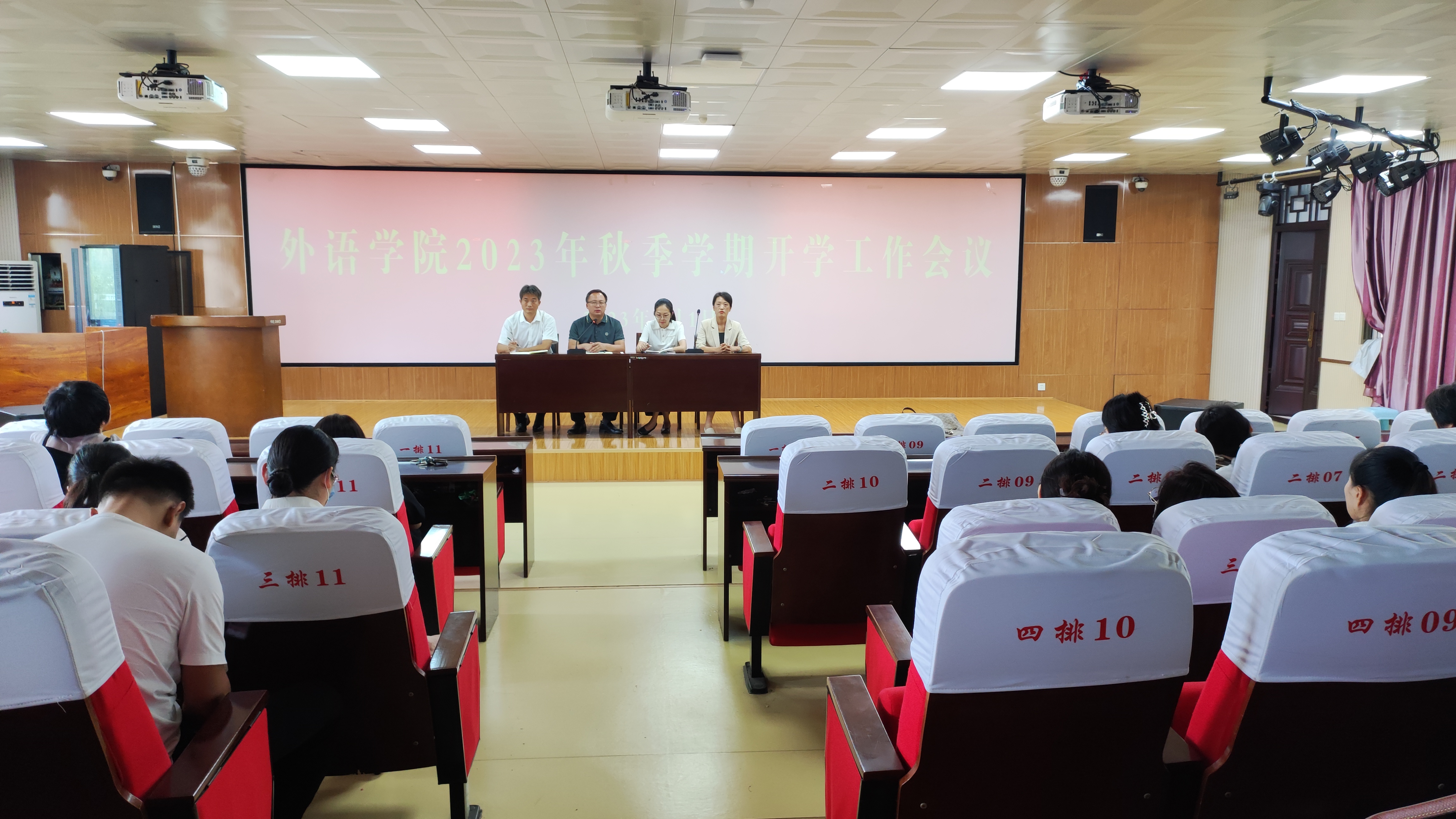 会上,院领导班子成员分别围绕分管工作,就暑期工作、秋季学期重点任务等进行了总结和安排。党委副书记王頔围绕学生工作,重点就各年级军训、迎接2023级新生等工作进行了具体安排。副院长孟喜华围绕教学工作,重点就新学期教学安排、审核评估、英语师范专业认证、2024版人才培养方案修订等工作作了详细安排。副院长杨静围绕科研工作,重点就殷商之源文化外译传播研究中心建设、科研团队打造、学科建设、实验室建设等作了重点安排,并希望大家选准方向,借助科学方法,持之以恒发力,突破科研难关。