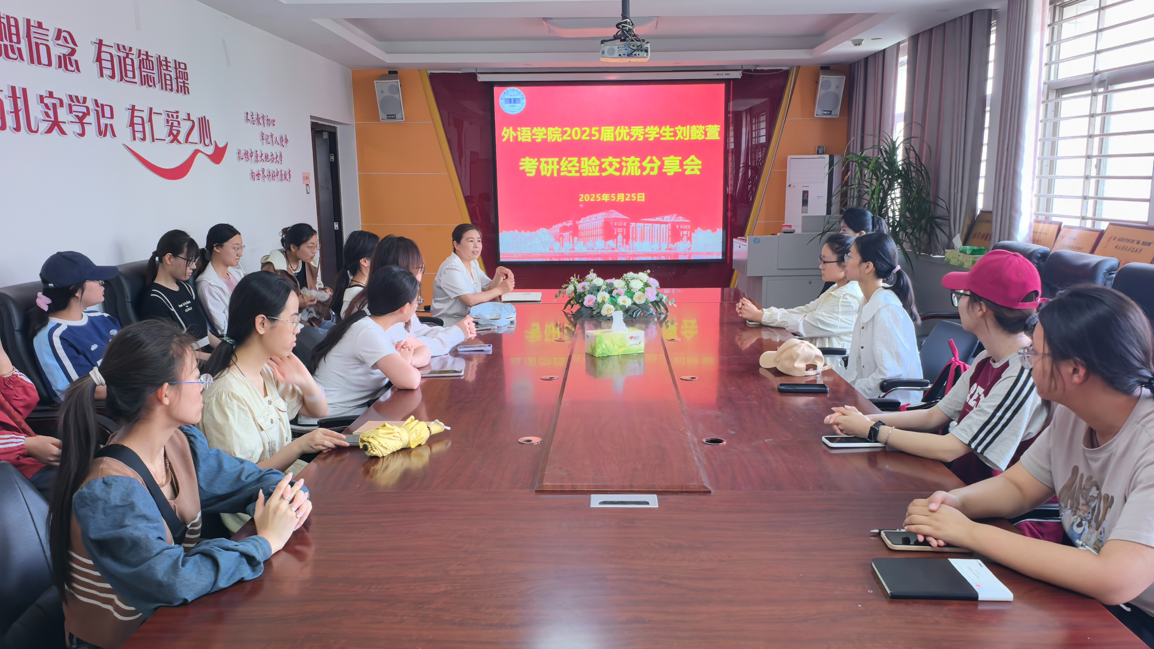 为帮助学生明确发展方向,规划成长路径,获取有益经验,beat365在线唯一官网新闻中心于5月25日在应天楼214会议室举办2025年考研经验分享交流会,会议由学工办主任常素枝主持,今年考入对外经济贸易大学的2025届毕业生、新闻中心第二届部长刘懿萱进行分享,新闻中心全体成员和2023级学生代表参加。