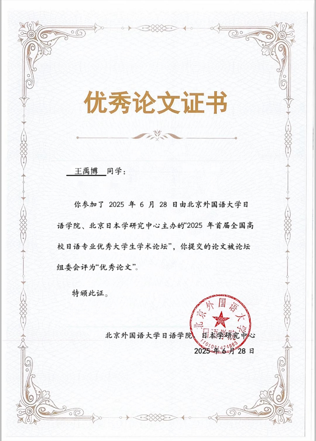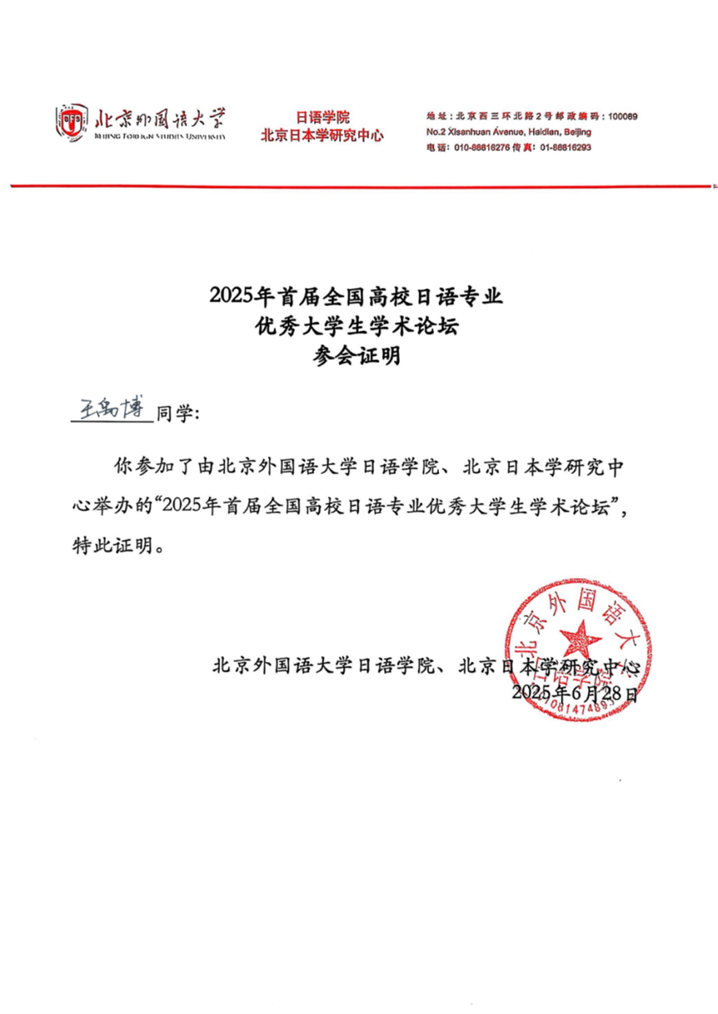 2025年6月28日,由北京外国语大学日语学院、北京日本学研究中心联合主办的首届全国高校日语专业优秀大学生学术论坛在北京外国语大学成功举办。