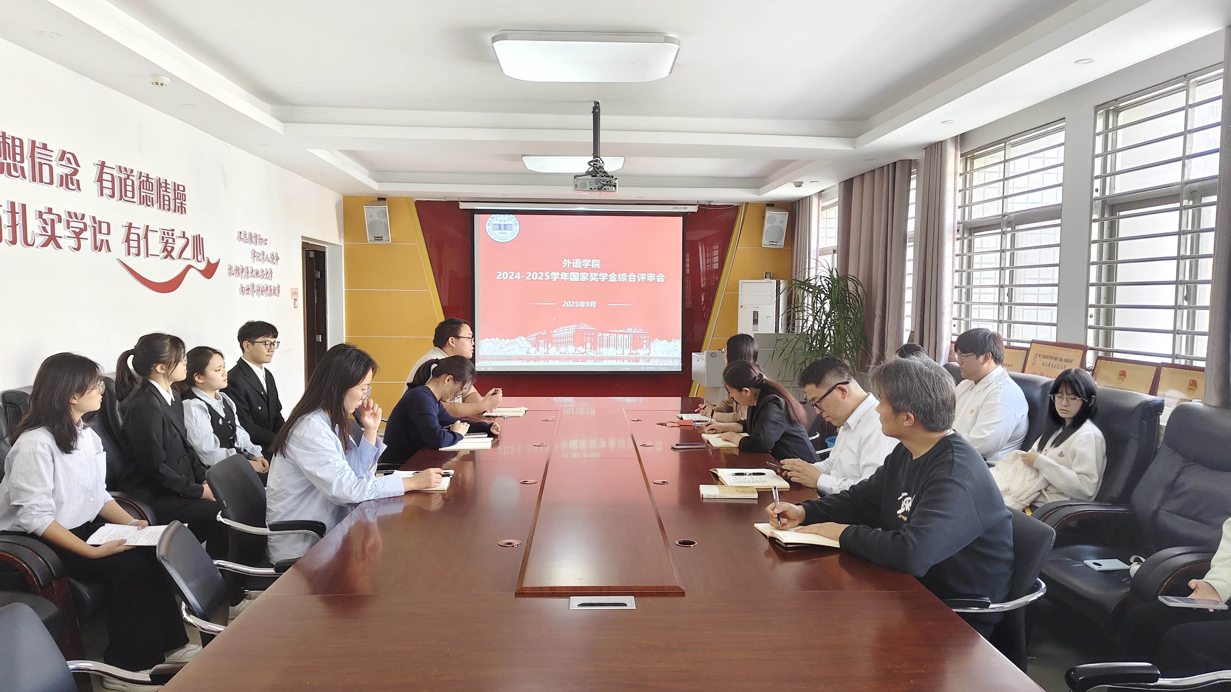 为规范、公正推进国家奖学金评审工作,beat365在线唯一官网于9月19日在应天楼214会议室召开2024-2025学年国家奖学金综合评审会,会议由beat365在线唯一官网资助工作专员郭继鹏主持,学院领导班长成员及各年级辅导员参加。