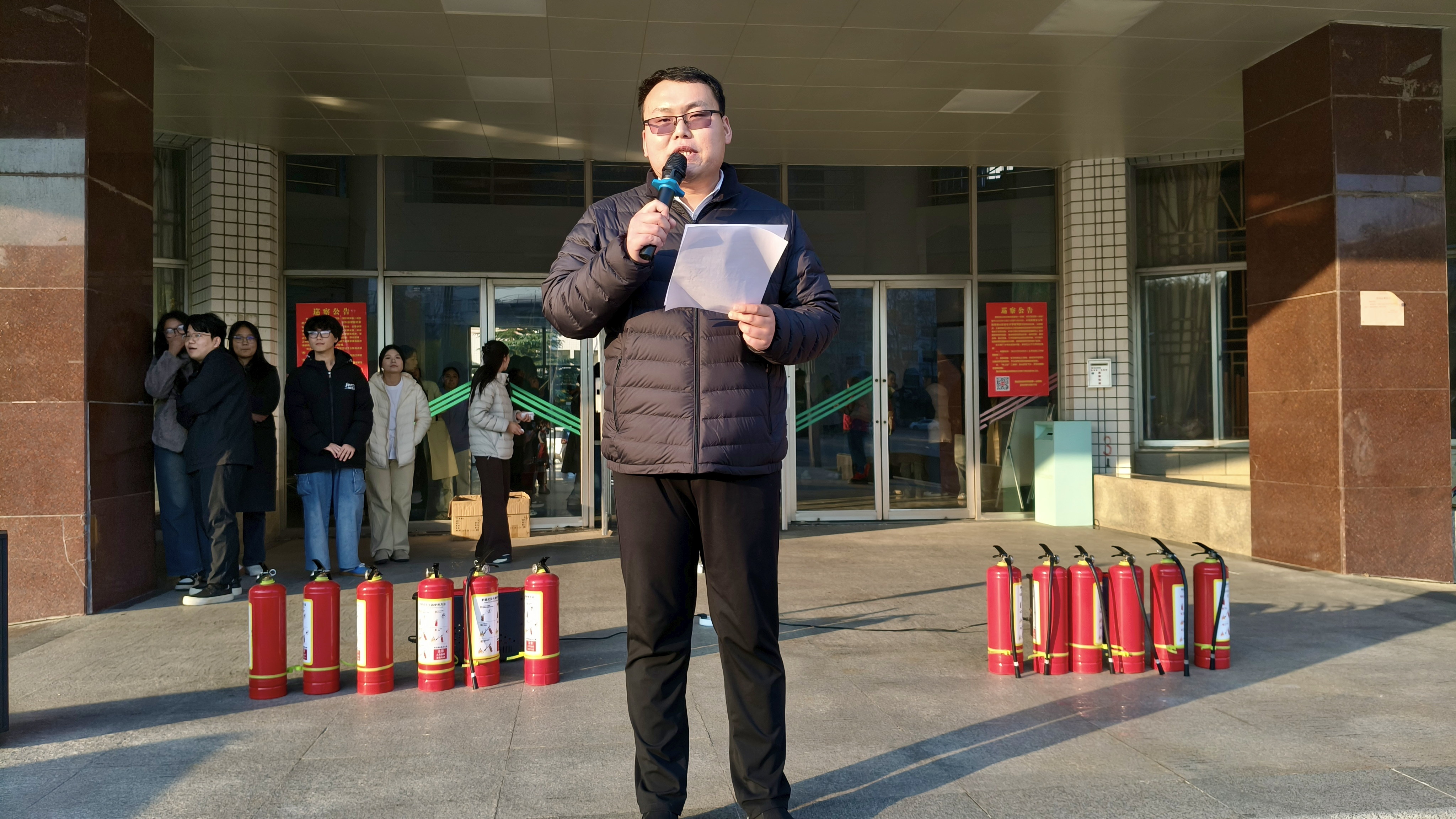 活动现场,郭继鹏围绕常见火情特点,详细讲解了灭火器的适用场景以及安全注意事项,重点演示“提、拔、握、压”四步标准操作流程,并围绕火情预判、初期火灾处置等实用内容进行了细致地说明,帮助学生理清应急处置关键环节。在实操演练环节,学生们分组有序进行模拟灭火练习:从规范拔下保险销、调整站位,到对准“火源”根部精准喷射,郭继鹏全程现场指导,及时纠正不规范动作,确保每位学生熟练掌握操作要领,整个演练过程规范有序,达到了“以练促防”的预期效果。