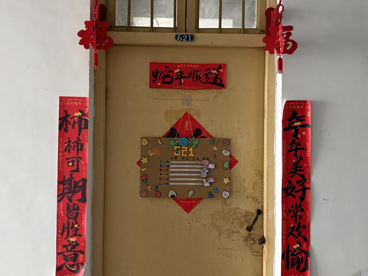 活动启动以来,全院各宿舍积极报名参加,充分发挥想象与巧思。有的宿舍共同绘制了包含宿舍成员名字与梦想的创意门牌;有的宿舍展示了大家寒假离校前提前为春节张贴的年画;还有的宿舍用照片串联起从入学到现在的成长记忆,书架上的书本与用品整齐排列,更添一份家的妥帖与温暖。每一份作品都配有生动的文字说明,讲述着装饰背后的故事与情感,也传递出整洁、有序、温馨的宿舍生活理念。