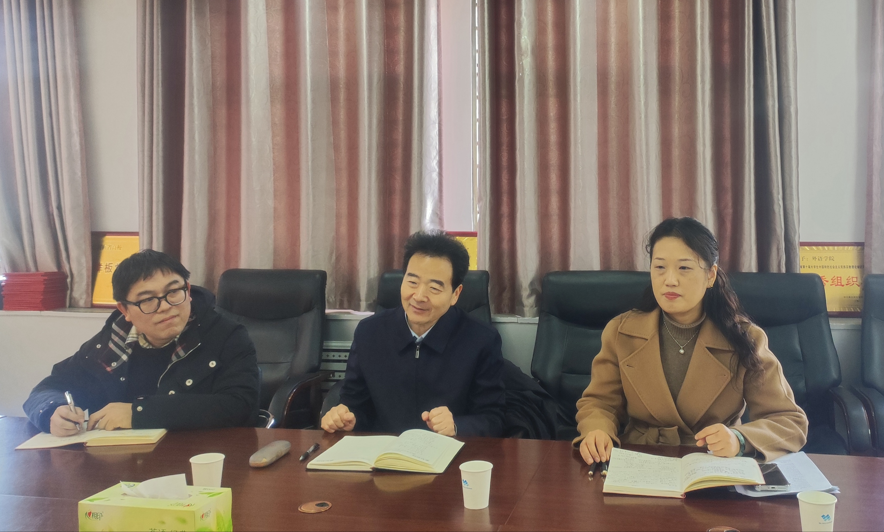 调研会上,朱震杰围绕学院发展规划作汇报,重点阐述了结合“十五五”规划,在教学、科研、非学历教育等领域的布局思路,强调要推动党建与各项工作深度融合、互促共进,以党建引领学院高质量发展。杨静分析了当前外语专业发展面临的机遇与挑战,提出构建“语言+”多元发展体系,坚持“语言服务”和“文化传播”双轮驱动;探索“语言+人工智能+专业领域”的跨学科发展路径,一体推进专业优化升级与硕士学位点的申报工作。各系部主任结合工作实际发言,就传统英语教学模式改革、专业实习基地建设、教师外出实践交流等议题提出了意见建议。