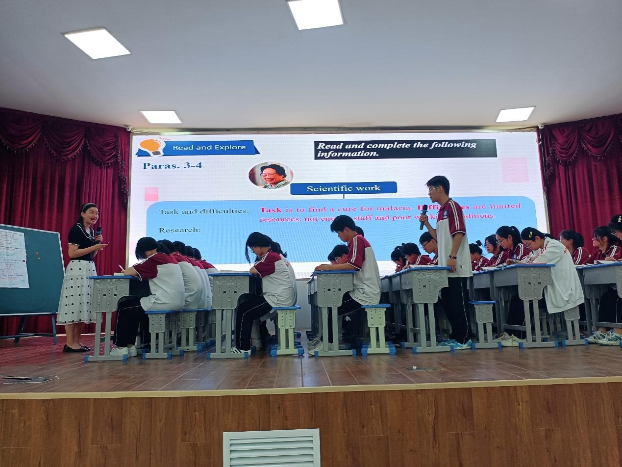 第二节观摩课由黄莎老师为同学们进行展示。黄莎老师以北师大版高中英语教材的Unit 6 The Admirable Lesson 1 A Medical Pioneer 为内容进行了课堂教学展示。黄莎老师以屠呦呦的事迹为案例展开课堂教学,课堂教学环节安排科学合理,阅读前、阅读中、阅读后的相关教学活动设计循序渐进,符合学生的认知能力和学习习惯,课堂教学体现了新课程标准的理念,着力培养学生的学科核心素养。