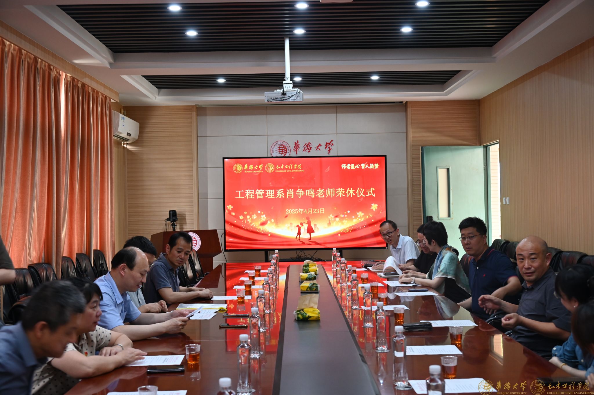 春风送暖,师恩难忘。4月23日下午,8455新葡萄官网版在C5-406会议室隆重举办教师荣休座谈会,为工程管理系肖争鸣老师送上真挚的祝福与敬意。人事处副处长、高层次人才办公室主任李海锋,学院党委书记陈雪琴、副院长、工会主席肖朝昀与工程管理系师生代表齐聚一堂,共同见证肖争鸣老师荣休时刻。仪式由学院党委副书记陈竹林主持。
